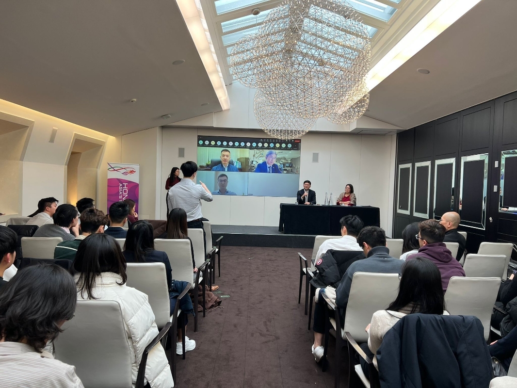 醫院管理局總行政經理(醫療職系)關慧敏醫生(右三)與醫學生交流,介紹香港公立醫院的工作環境、工作前景及其他生活上的安排。 代表團在倫敦出席英國香港醫學會的“香港日”活動,向當地醫學生講解如何透過特別註冊計劃、有限度註冊計劃及其他途徑加入香港公營醫療機構工作一定年期後,可免試取得正式註冊的途徑。另外,代表團亦向他們介紹返港後,在公營醫療機構接受專科培訓的機會及取得專科資格的安排。 代表團亦會與一批執業醫生見面,介紹香港公立醫院的工作環境、工作前景及其他生活上的安排等,吸引他們返回香港工作。 醫務衞生局局長盧寵茂欣悉代表團順利展開行程。他強調:“行政長官在2022年《施政報告》中提及,我們要更積極和進取地‘搶人才’。醫務衞生局在吸引、挽留及發展醫療人才方面一直不遺餘力,此次派出代表團‘主動出擊’,希望吸引不同志向的醫學生及執業醫生來港,在醫管局、衞生署或兩間本地大學醫學院服務,發揮所長。”