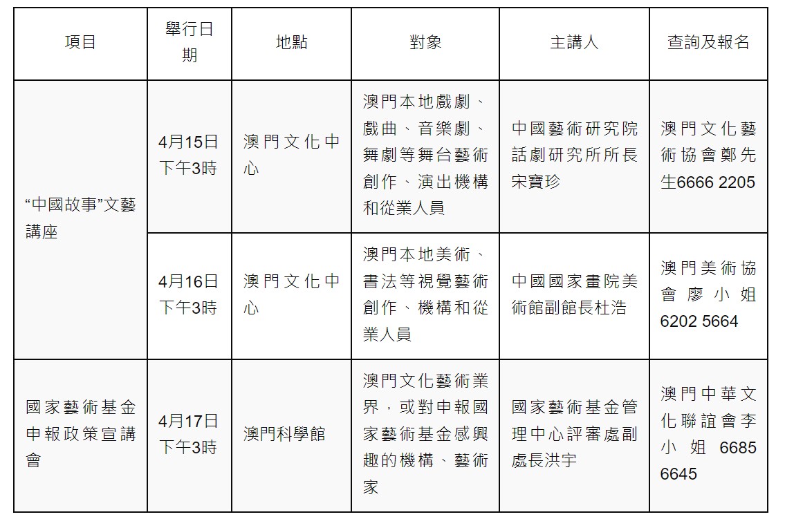 香港新聞網4月12日電 由國家藝術基金管理中心主辦,澳門中華文化聯誼會承辦之“國家藝術基金申報政策宣講會”將於4月17日下午3時在澳門科學館舉行,宣講會將向與會者介紹國家藝術基金2024年度資助概況及申請流程,歡迎澳門文化藝術業界,或對申報國家藝術基金感興趣的機構、藝術家報名參與。 國家藝術基金是由國家設立,旨在繁榮藝術創作、打造和推廣精品力作、培養藝術創作人才、推進國家藝術事業健康發展的公益性基金。該基金自2021年起首次把港澳特區納入國家藝術基金資助體系,截至2023年為止,澳門合共20個項目成功入圍。今年國家藝術基金即將再度面向澳門開放申請,為本地文化藝術機構和藝術工作者提供更多資源和平台,以跨界融合、創意創新的方式,豐富拓展本澳文化藝術團體及藝術人才的視野,亦為澳門打造以中華文化為主流、多元文化共存的交流合作基地注入動力,對提升藝術創作、培養藝術人才、開展文化交流起促進作用。有與趣報名參與之人士或機構可致電澳門中華文化聯誼會李小姐6685 6645。 此外,國家藝術基金管理中心亦將於4月15及16日組織內地藝術專家在澳門文化中心舉辦兩場“中國故事”文藝講座,通過國家藝術基金資助專案案例,介紹內地舞台藝術和視覺藝術類創作的發展趨勢、創造性轉化和創新性發展最新成果,以及有關政策情況和解析申報國家藝術基金的操作指南。兩場講座分別由國家藝術基金專家委員會專家、中國藝術研究院話劇研究所所長宋寶珍及國家藝術基金評審專家、中國國家畫院美術館副館長杜浩主持,查詢及報名事宜可致電澳門文化藝術協會鄭先生+853 6666 2205(4月15日講座)及澳門美術協會廖小姐+853 6202 5664(4月16日講座)。