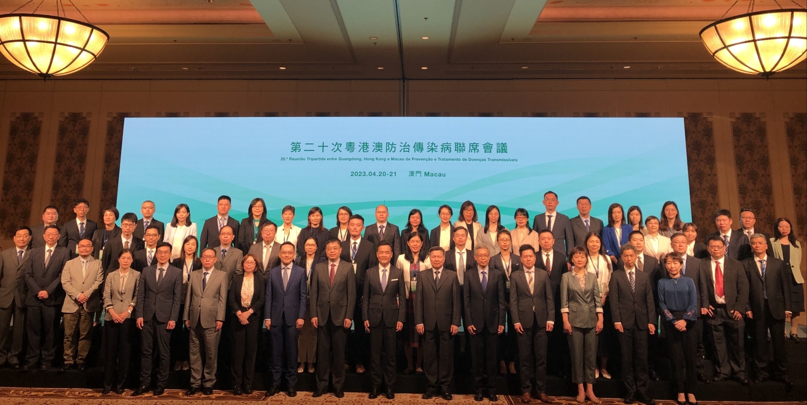 為期兩日的“第二十次粵港澳防治傳染病聯席會議”圓滿結束。 主持聯席會議的三地衞生部門主管分別為澳門衞生局局長羅奕龍醫生、廣東省衞生健康委員會(衞健委)副主任黃飛和香港衞生署署長林文健醫生。其他與會人士包括三地部門及香港醫院管理局代表共約60人。