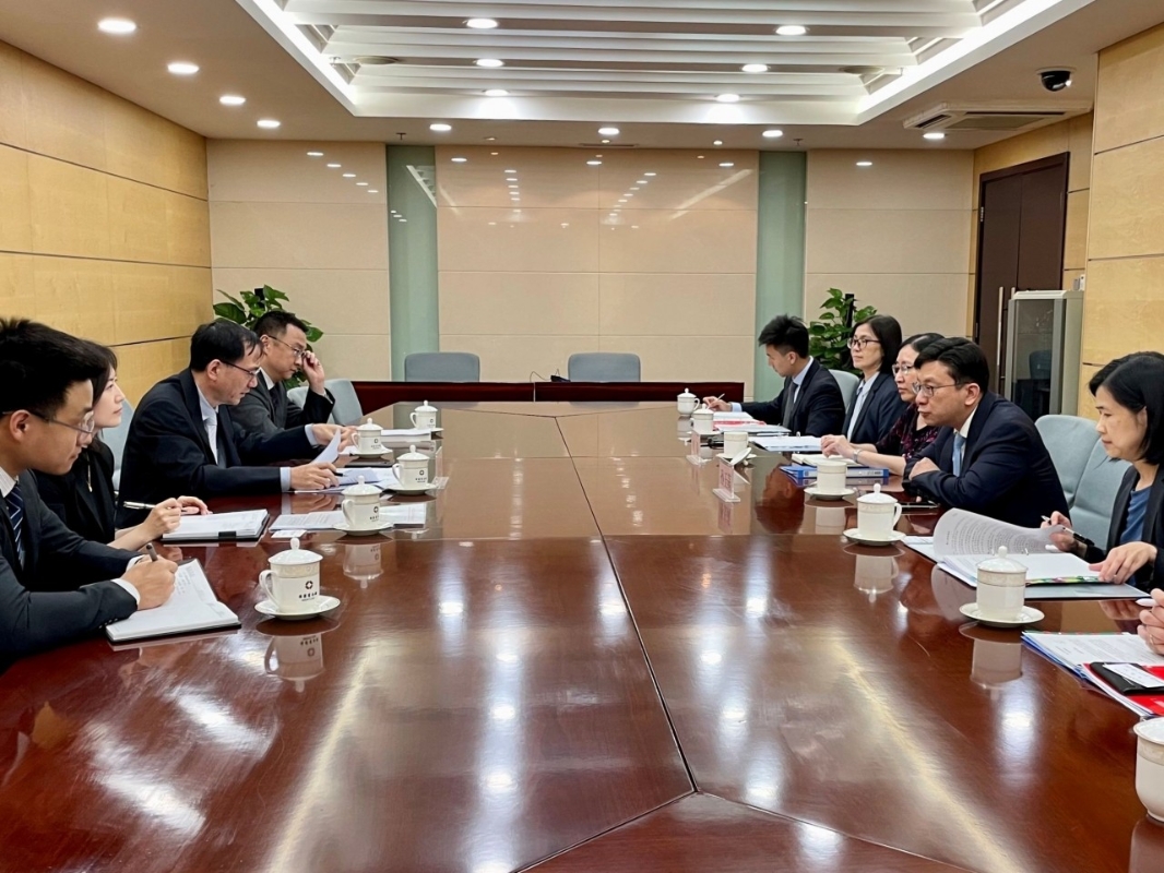 孫玉菡就對港勞務合作監督管理工作與劉民強(左三)交換意見。 代表團下午拜會商務部對外投資和經濟合作司副司長劉民強,就對港勞務合作監督管理工作交換意見。特區政府即將在下月起透過院舍輸入護理員特別計劃,適度容許安老院及殘疾人士院舍輸入護理員,孫玉菡感謝中央部委為實施特別計劃提供協助。 代表團昨日亦與中華全國總工會中國職工對外交流中心秘書長王舟波會面,以及回訪上月中來港考察的中國殘疾人聯合會。孫玉菡傍晚與在北京就讀的大學生交流,介紹香港一系列優化人才入境措施,鼓勵他們來港發展。 (完) 【編輯:黃璇】