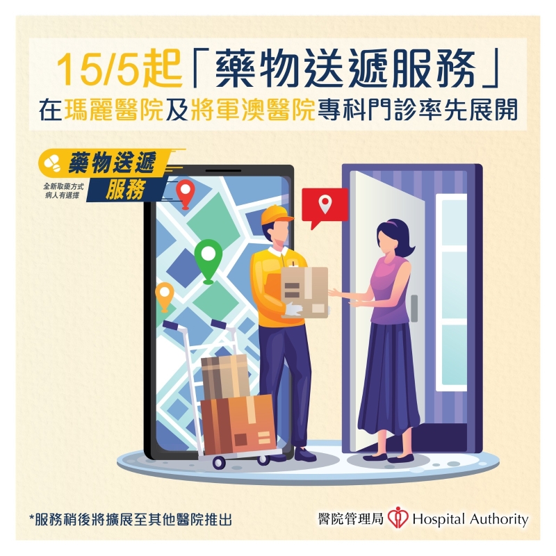 瑪麗醫院及將軍澳醫院專科門診全新藥物送遞服務5月15日正式推出。 醫管局總藥劑師李成章表示,希望藥物送遞服務能為病人提供另一便利選擇:“醫管局於疫情期間為接受遙距視像診症的新冠確診病人送藥到家中,對今次發展藥物送遞服務提供寶貴經驗。現在病人可省卻在醫院藥劑部輪候的時間,安坐家中等候藥物送達。” 新服務首階段適用於18歲或以上並已成為醫管局一站式手機應用程式HA Go正式會員的專科門診病人。病人只要家中有足夠藥物服用至藥物送達,以及沒有需要即時服用的新處方藥物便可以安排藥物送遞服務。病人接受診症後可透過HA Go安排送遞藥物至家中或本港指定地址,範圍覆蓋港九新界,包括離島。不論藥物數量、重量、大小或種類及送遞地點,每張處方劃一收費65元。送遞服務涵蓋大部分藥物,包括需冷藏的藥物,但不包括香港法例列明的“危險藥物”。一般來說,病人如在就診當日下午3時前確認送藥安排,藥物可於翌日送抵。 醫管局強調,新服務屬一項增值服務,為病人提供多一種便利選擇。醫管局對物流服務公司就藥物的保存、溫度控制等有嚴格要求以確保藥物的品質和安全。病人收取藥物時須出示HA Go內的二維碼作身分核對,確保藥物安全送到病人手中。 李博士指,醫管局同時會為選擇藥物送遞服務的病人提供遙距用藥支援,病人於HA Go內選擇送藥服務時,可選擇“藥劑師用藥指導服務”。醫院藥劑師會於病人收到藥物後致電或透過視像聯絡病人,解答他們對用藥的查詢,確保病人用藥正確及安全。 新服務將於6月擴展至港島西及九龍東醫院聯網的其他專科門診診所,預計年底前會於其他聯網的專科門診全面推行。 (完) 【編輯:黃璇】
