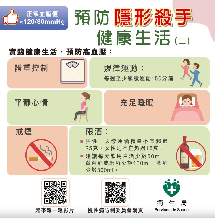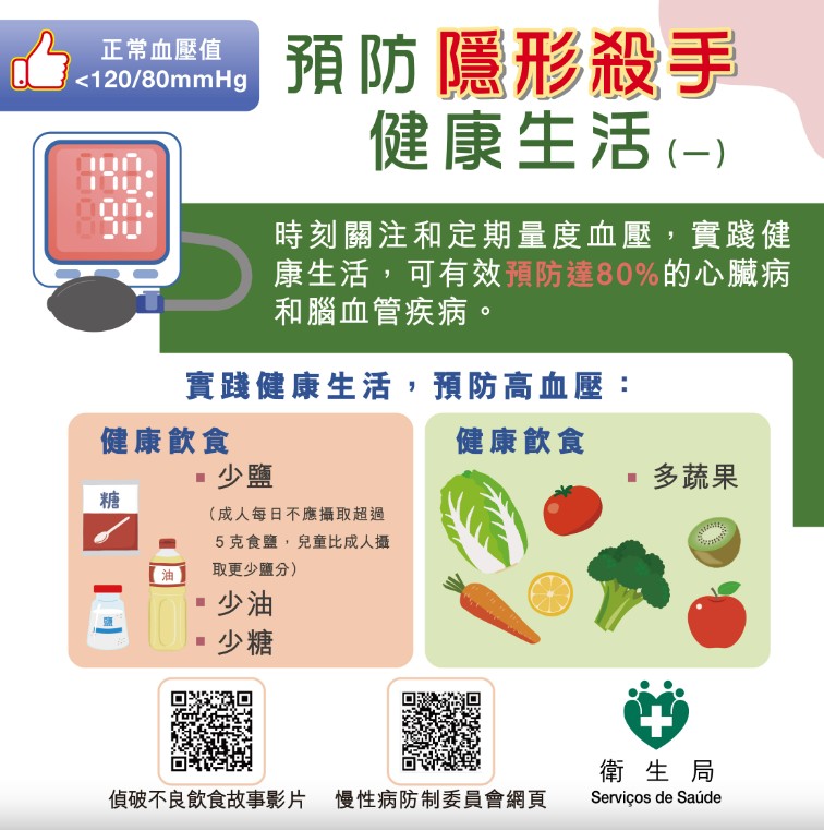 高血壓是過早死亡主因 據世界衛生組織資料,全球估計有12.8億30至79歲成年人患有高血壓,其中2/3生活在低收入和中等收入國家;估計46%的成年患者不知道自己患有高血壓,得到診斷和治療的成年高血壓患者約佔42%,且只有近21%成年高血壓患者的問題得到控制;故此,高血壓是世界各地過早死亡的主要原因,而非傳染性疾病領域的一項全球目標是在2010年至2030年期間把高血壓患病率降低33%。 舉辦系列活動倡導社會共同關注 澳門特區政府衛生局為配合“世界高血壓日”,持續推動社會關注心腦血管疾病,5月至12月期間聯同健康城市委員會及慢性病防制委員會合辦、澳門美術協會協辦“保護健康心臟”繪畫比賽系列活動,期望提升本澳學童對心腦血管疾病的關注,在繪畫創作過程中了解心腦血管疾病的病因、預防方法及健康生活對預防疾病的重要性,從而激勵從小養成良好的健康生活習慣,積極建構健康的財富,遠離心腦血管疾病。是次繪畫活動分為親子組(小學一年級至三年級學生,與1位家長組隊)、初級組(小學四年級至六年級學生)和高級組(初中一年級至三年級學生),參加者可透過就讀學校報名及遞交參賽作品,6月16日截止收件,比賽結果9月上旬公佈,得獎作品於今年9至12月期間在本澳學校巡展。 推動居民自行測量血壓及體重 此外,衛生局自2015年起亦推出了“自家健康 自家管理”計劃,現時在澳門社區設立超過30個血壓體重自助檢測站,推動居民透過這些檢測站或在家中自行測量血壓及體重指數,並記錄測量數值,促進其關注和管理自身的健康,以預防和控制高血壓等慢性病。居民可透過“一戶通"手機應用程式,查閱自己在“自家健康 自家管理”計劃檢測站點所測量的記錄。 年內設更多自助檢測站 數據顯示,2021年在衛生局轄下設施及鏡湖醫院已登記的高血壓患者超過9400人,當中約80%患者在衛生中心接受免費的跟進或治療服務;2022年 “自家健康 自家管理”計劃血壓計和身高體重測量儀的總使用人次分別逾74萬和29萬人次。為更便利居民,衛生局現正計劃年內在社區增設更多的自助檢測站。 (完) 【編輯:黃璇】