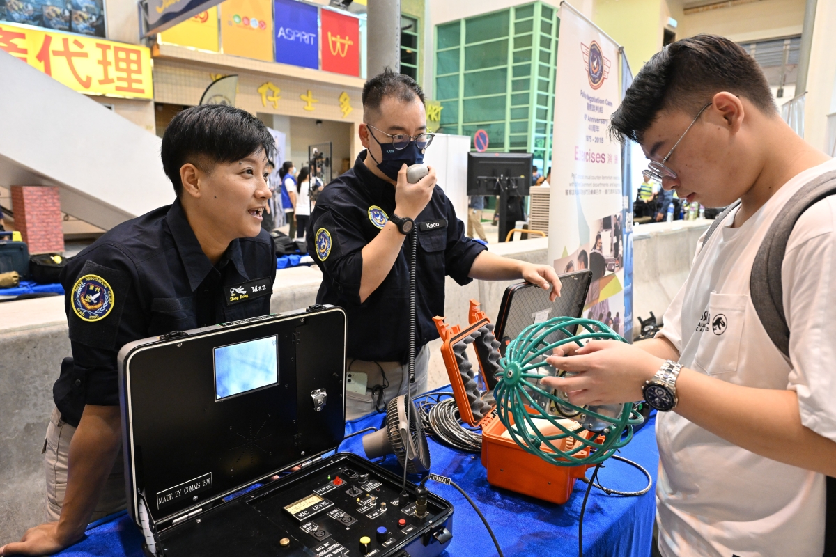 香港新聞網6月19日電 香港警隊在香港警察學院舉辦“警察招募.體驗日”,以“無限可能”為主題,讓參加者透過參與各種體驗活動,了解警隊的遴選程序、警察學院的基礎訓練,以及多元化的警務工作,從而體會警務工作如何讓他們各展所能。 招募活動共有三個主題環節:(一)見習督察/警員投考工作坊;(二)互動劇場暨部門展覽/招募“講”場/學院訓練分享;及(三)體能測試工作坊。參加者可即場報名投考及進行部分初步遴選程序。五名警“募”大使亦在場與參加者分享各方面的投考資訊。
