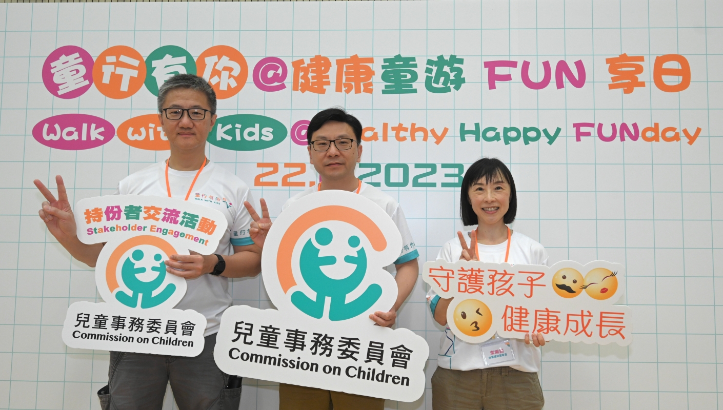 警務處處長蕭澤頤(左起)、身兼兒童事務委員會副主席的勞工及福利局局長孫玉菡,以及社會福利署署長李佩詩出席活動。 “健康童遊FUN享日”是兒童事務委員會“童行有你”主題下首項戶外交流活動。委員會一向重視兒童的發展及福祉,致力與不同界別同心協力建設關愛兒童的共融社會。“童行有你”以一連串宣傳計劃,配合全年不同主題的交流活動,提高公眾對保護兒童的關注及加深對委員會多方面工作的認識。 身兼委員會副主席的勞工及福利局局長孫玉菡出席活動時表示,現場設計的多個歷奇和體驗活動樂趣與啓發性並重,希望兒童和家長平日也能多一同玩樂,享受閒暇,促進親子溝通,提升身心健康。一同出席的警務處處長蕭澤頤說,活動可讓參與的家庭共享一天親子樂。他補充,保護兒童的工作任重道遠,鼓勵市民及各界同行同心為保護兒童出一分力。此外,社會福利署署長李佩詩表示,家長在照顧子女上難免會遇到壓力,照顧有特殊需要兒童的家長更需要社會的支援。她呼籲市民多關心身邊人,為兒童建設關愛和諧的環境。