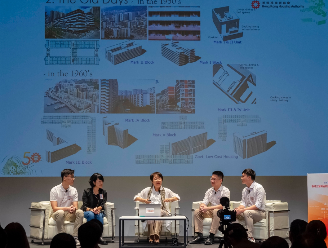 前房屋署副署長(發展及建築)兼香港建築師學會前會長馮宜萱(中)於“‘香港公營房屋發展’——與新世代對談”講座上,與年輕專業人士共同探討公營房屋的設計與建造方向。 房委會慶祝成立50周年的主題是“凝造‧未來”,“凝造”象徵房委會多年來努力不懈,與持份者攜手為香港市民建造美好家園;而“未來”則標誌着房委會在帶領公營房屋發展方面,孜孜求進,克服未來挑戰。 此外,房委會亦舉辦多項50周年慶祝活動,包括“築蹟、足跡”屋邨導向遊網上指南、公屋攝影比賽、三人籃球挑戰賽和公開展覽等動靜兼備的活動,適合不同年齡及愛好的市民參與。有興趣人士可以登入房委會50周年專題網站瀏覽最新資訊。 (完) 【編輯:黃璇】