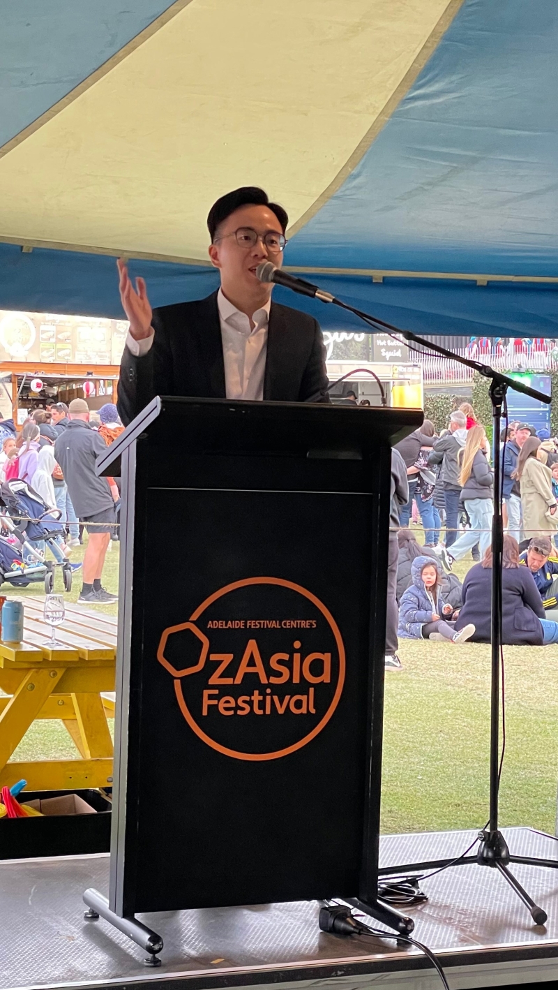 香港特區政府新聞處圖片。 悉尼經貿辦副處長麥瑞禧於綵燈會酒會致辭,讚揚阿德萊德藝術中心多年來的工作,以及悉尼經貿辦與澳亞藝術節的緊密關係。適逢阿德萊德藝術中心今年慶祝50周年紀念,悉尼經貿辦期待未來與阿德萊德藝術中心在澳亞藝術節及其他活動上攜手合作,共同推動香港與澳洲的文化藝術交流。