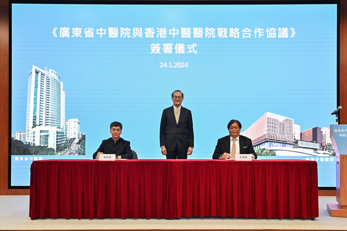 盧寵茂(中)見證張忠德(左)與王桂壎簽署香港中醫醫院合作協議。 廣東省中醫院院長張忠德和香港中醫醫院董事局主席王桂壎簽署戰略合作協議。根據協議,在國家中醫藥管理局和醫衞局支持下,香港中醫醫院與廣東省中醫院將推進多方面合作,包括開院籌備工作、中醫藥人才交流、跨境遠程病例研討、建立藥物相互作用提示資料庫共享平台、舉辦學術研討會、建立科研網絡,以及進階中醫分科護理培訓。 盧寵茂致辭時說,根據施政報告,香港首間中醫醫院與廣東省中醫院建立合作機制,涵蓋資源共享、經驗交流、技術合作,支援中醫藥持續發展和符合國家《“十四五”中醫藥發展規劃》目標,並落實《粵港澳大灣區中醫藥高地建設方案(2020-2025年)》要求構建中醫藥共商、共建、共享體制,為深入推進中醫藥高質量發展和助力粵港澳大灣區建設作出貢獻。 盧寵茂又與香港中醫醫院董事局和核心管理團隊成員會面,就如何落實香港中醫醫院的使命及應對開院籌備工作聽取報告。他向團隊表達對香港中醫醫院發展的信心和期望,勉勵各人努力完成這項任重道遠的工作。 香港中醫醫院採用公私營合作模式,由特區政府全資興建,透過招標在2021年6月公布委託浸會大學為承辦機構,負責推展和營運工作。浸大根據服務契約要求,同年年底成立有限公司擔任營運機構,負責中醫醫院管理、營運和保養。(完) 【編輯:黃璇】