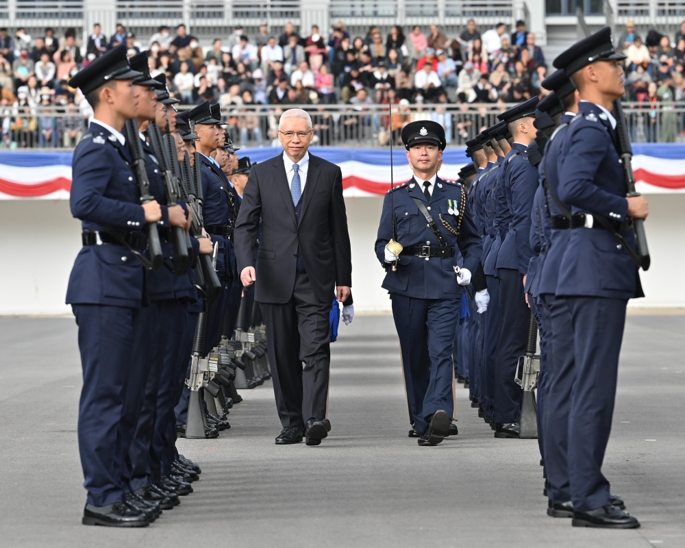 香港新聞網2月3日電 香港鐵路有限公司(港鐵)非執行主席歐陽伯權今日(3日)出席香港警察學院結業會操,檢閱27名見習督察及127名學警。