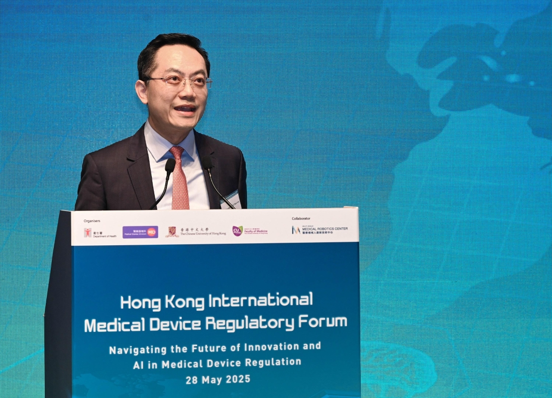 圖示香港特區政府衞生署署長林文健醫生在論壇致辭。香港特區政府新聞處圖片 據悉,衛生署與香港中文大學醫學院當天在香港科學園舉辦香港國際醫療器械監管論壇,探討醫療器械創新發展與AI的變革性應用及監管。 林文健致辭時表示,署方已分別於2023年及2024年針對網絡安全和AI醫療器械發出指引,協助製造商掌握和遵循衛生署設立的自願性醫療器械行政管理制度。特區政府銳意發展香港成為健康和醫療創新的樞紐,即將成立的香港藥物及醫療器械監督管理中心會根據臨床數據,對醫療產品的安全、品質及成效進行獨立評估。 中大醫學院院長趙偉仁致辭時表示,創新醫療器械的湧現為醫療行業帶來革命性變化,需要通過跨國和跨境合作,積極推動監管體系的發展,以應對醫療技術一日千里的新趨勢。 當日的活動共吸引約200人出席,邀請了香港、內地、馬來西亞和沙特阿拉伯的醫療器械監管機構代表,以及香港和匈牙利的學者發表主題演講。論壇聚焦討論醫療器械產業趨勢、國際監管協調機制,以及AI技術在醫療領域的突破性發展。(完) 【編輯:馬華】