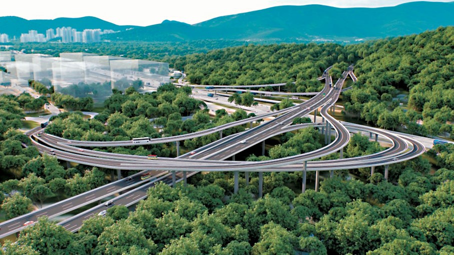 圖為路政署文件當中北都公路模擬連接古洞北新發展區、粉嶺公路的交匯處。香港特區政府新聞處資料圖