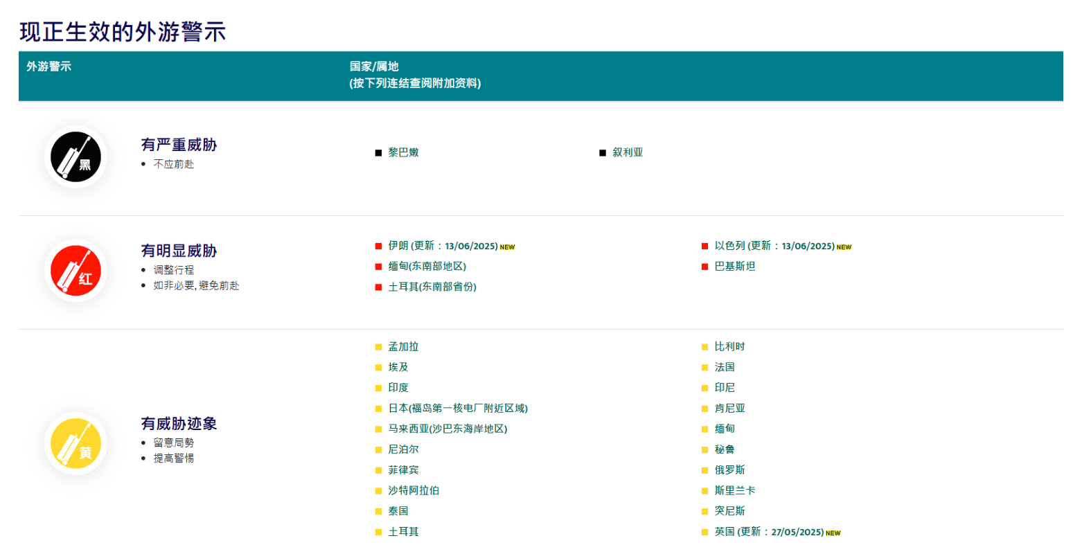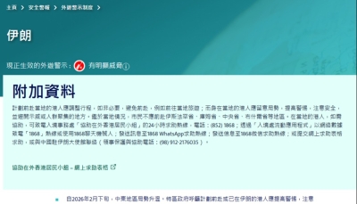 香港更新市民赴伊朗旅遊紅色警示