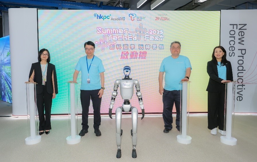 香港生產力局“創科遊學 玩轉暑假2025”精彩啟航香港新聞網7月4日電 由香港生產力局旗下生產力學院精心策劃的年度STEAM盛事 “Summer TechEd Fest創科遊學 玩轉暑假 2025”(“Summer TechEd Fest”)4日隆重開幕。今明兩日舉行的活動以體驗“新質生產力”為主題,為中小學生、家長及教育工作者提供近百項精彩創科活動,包括STEAM 工作坊、試玩體驗區、互動攤位、創科作品展及生產力局導賞團等,供本地中小學生、家長及教育工作者參與。活動反應熱烈,工作坊登記更早已爆滿,一連兩日的入場券登記人數超過4500。 作爲全港最大型創科教育活動之一,“Summer TechEd Fest”獲創新科技及工業局、民政及青年事務局、教育局、創新科技署、數字政策辦公室,聯同多個教育界、商界及科技機構合共30多個機構全力支持。活動開幕典禮今天於生產力大樓新質生產力展館進行,由創新科技及工業局副局長張曼莉女士,JP以短片致辭;生產力局副主席于健安先生,BBS,JP、數字政策辦公室助理數字政策專員(共用服務及採購)關穎賢女士、生產力局首席技術總監張梓昌博士以及生產力局首席市場總監兼新世代企業及技能發展部總經理馮嘉寶女士與 HKPC 機械人大使 一同為活動掀開序幕。