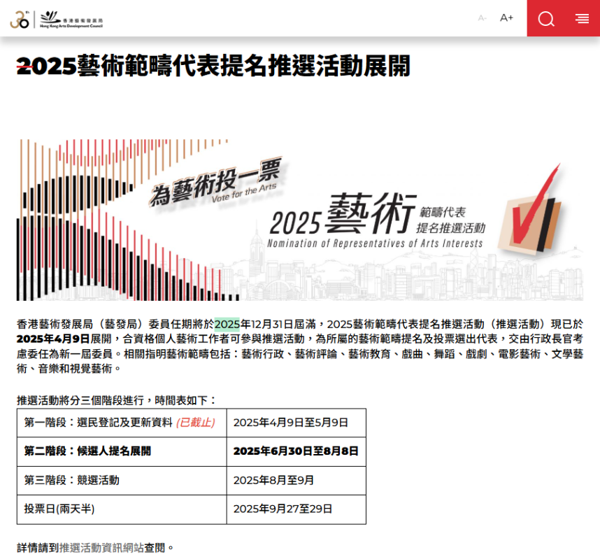 香港2025藝術範疇代表提名推選活動展開