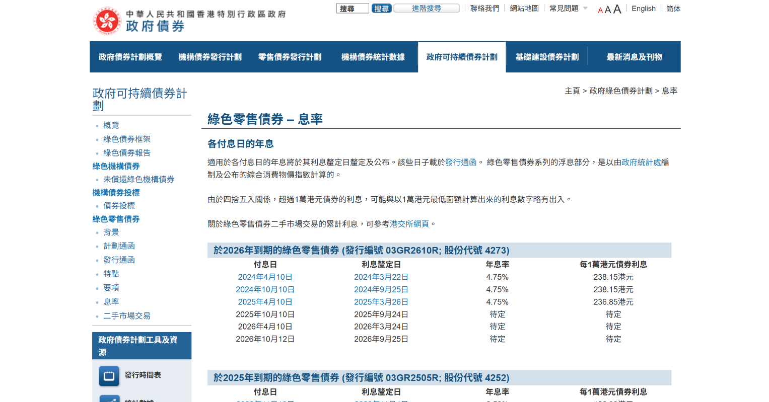特區政府債券網頁截圖