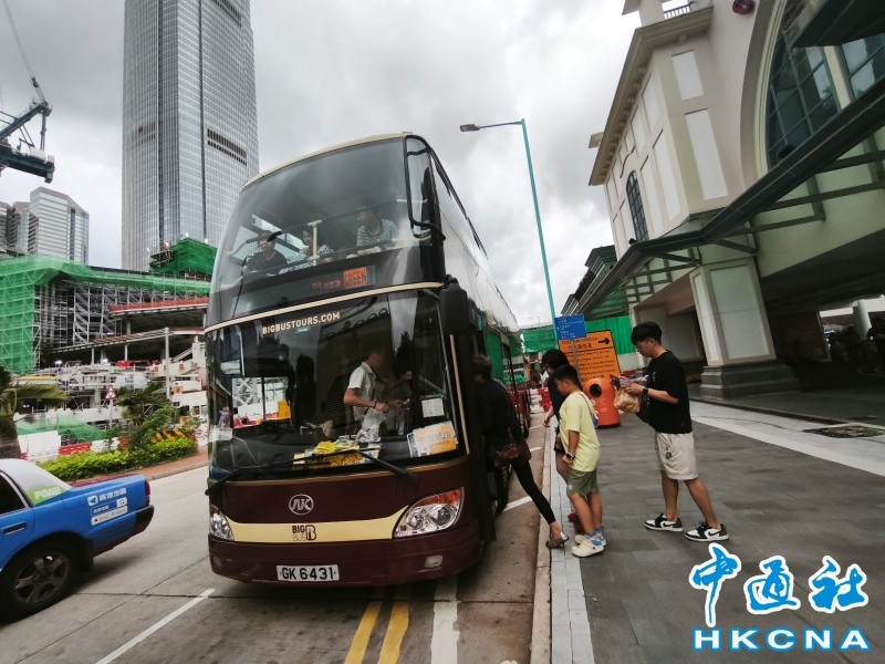 圖為旅客在中環碼頭乘搭觀光巴士。 香港中通社圖片 她表示,很高興從社交媒體看到不少訪港旅客對香港的公共交通非常感興趣,觀光巴士配搭雙層開篷巴士的設計,為旅客帶來全新的城市遊覽體驗。黃金周期間,城巴及九巴營運合共3組旅遊路線,整體乘客量上升超過1.5倍,總乘客人次超過5萬,證明新思維能為專營巴士廣開客路。 陳美寶指出,當局會積極探索開辦水上的士或街渡航線的可能性,進一步推廣水上交通。10月1日起,“尖東-中環(經灣仔)”的水上的士航線加強服務,由每日7班增至10班,並引入豪華觀光船選項。至於連接西九文化區和中環兩大地標的新短途航線,預計會於年底前試辦。 陳美寶亦指,“粵車南下”讓合資格的廣東單牌私家車申請使用港珠澳大橋來港,相關籌備工作如火如荼。她下星期會在立法會交通事務委員會匯報,期待推出政策後,可吸引內地旅客留港過夜。(完) 【編輯:紀東】