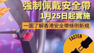 香港明年公交和商用車乘客須佩安全帶分享到: