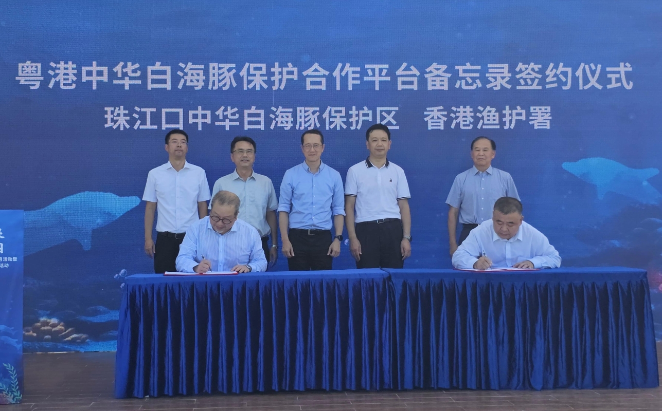 香港新聞網11月8日電 香港特區政府漁農自然護理署8日與廣東珠江口中華白海豚國家級自然保護區管理局簽署《中華白海豚保護合作平台備忘錄》(《合作備忘錄》),深化粵港兩地合作保護於珠江口水域棲息的中華白海豚。