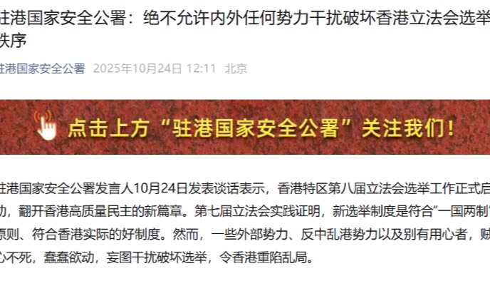 發言人強調,駐港國家安全公署自2020年7月成立以來,堅定依法履職,時刻保持警惕、嚴陣以待,堅決防範、遏制、打擊危害國家安全的行為和活動。隨着香港國安法、《維護國家安全條例》及其附屬法例等維護國家安全法律深入實施,香港已邁入國安法治新階段。駐港國家安全公署堅定支持香港特區毫不手軟依法打擊“以災亂港”行徑,堅決懲治危害國家安全的行為和活動,堅決反制任何外部勢力的插手干預,堅決捍衛香港來之不易的繁榮穩定大勢。“我們正告妄圖‘以災亂港’的反中亂港分子,無論你們變換什麼手法,都一定會受到香港國安法和《維護國家安全條例》的追究嚴懲!”(完)