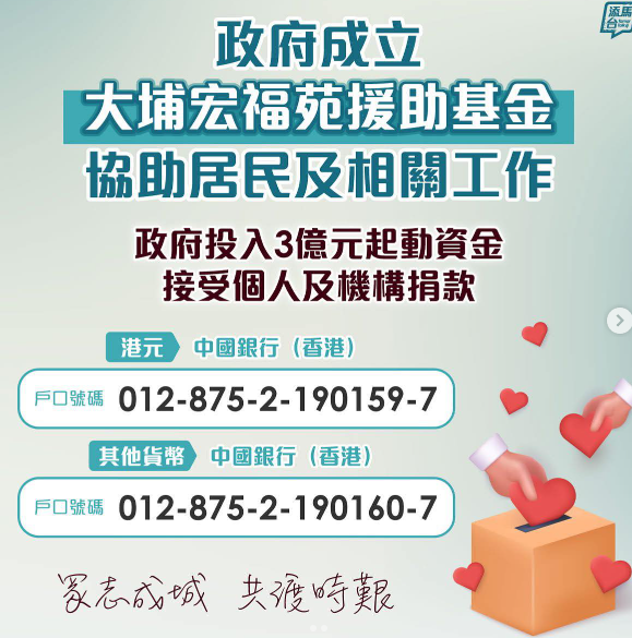 政府成立的大埔宏福苑援助基金總額已有約16億元