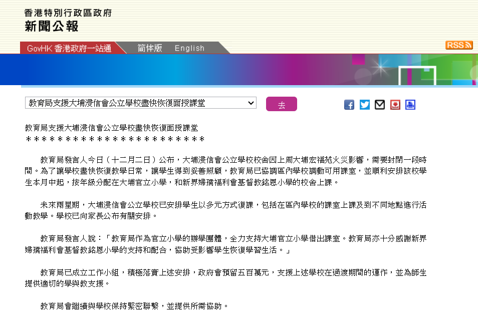 香港大埔火災受影響學生將分配至區內兩校上課分享到: