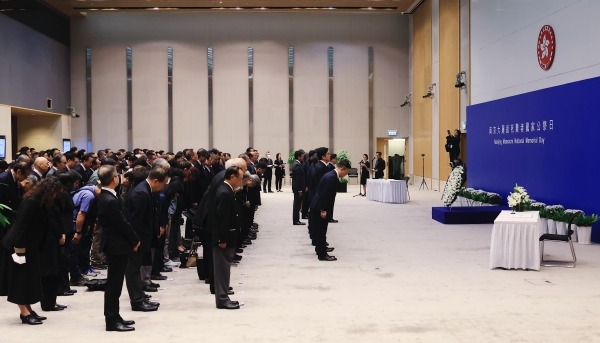香港特別行政區政府上午10時於政府總部設立公祭儀式,悼念在事件中遇難的同胞。