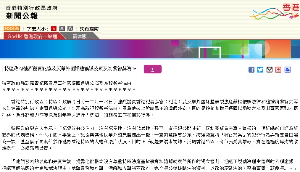 香港特區政府強烈反對個別所謂人權專家對“黎智英案”不實批評分享到: