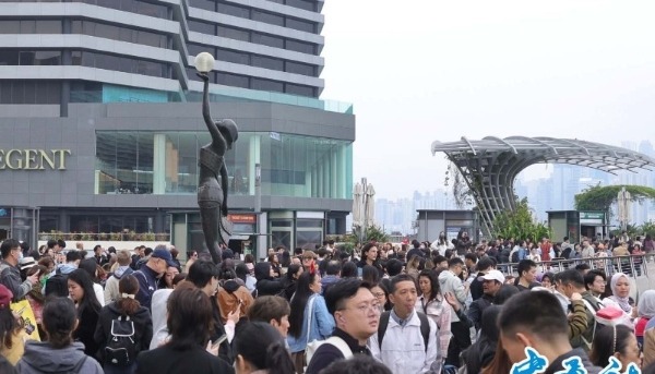 圖為元旦期間訪港遊客在尖沙咀遊覽。 香港中通社圖片 受惠於內地調休安排,香港錄得的內地入境旅客超過74萬人次,比去年同期上升約48%。非內地入境旅客則有約21萬人次,增長約19%。 政務司司長陳國基表示,適逢內地假期,加上香港舉行多項活動包括跨年倒數,吸引不少旅客來港感受節日氣氛。他指出,一系列節慶活動充分展示香港的多元魅力,深受市民大眾和旅客歡迎,市面氣氛熱鬧。 內地入境旅行團方面,除夕及元旦假期期間共有約630個內地入境旅行團,超過2.3萬人次訪港,當中過夜行程佔約60%。旅行團的秩序整體良好。酒店入住率普遍達90%。(完) 【編輯:林曉惠】