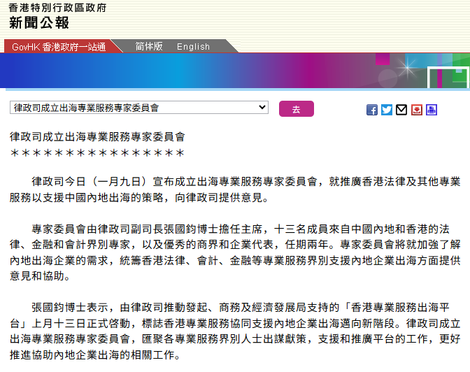 香港律政司成立出海專業服務專家委員會分享到: