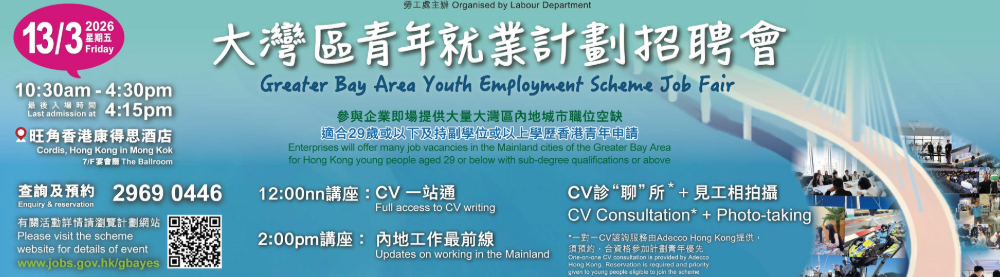是次招聘會共有超過二十間機構參與,提供大量大灣區內地城市工作的職位空缺,當中包括工程師(演算法/屋宇設備/軟件/數碼項目)、助理工料測量師、平面及媒體設計師、會計師、數學導師、畢業實習生、人力資源兼行政主任、總裁助理和高級市場主管等。參與機構將按“大灣區青年就業計劃”的規定,按照香港法例聘請合資格青年。歡迎有興趣青年即場遞交求職申請。 招聘會同時設有講座,講解撰寫求職履歷的技巧及如何善用社交媒體及人工智能(AI)工具作為輔助,以及在大灣區內地城市工作及生活的最新資訊。招聘會並邀請深圳市前海深港現代服務業合作區管理局首席港澳聯絡專家黃梓謙深入剖析前海建設帶來的發展機遇。講座均以廣東話進行。場內亦設有一對一履歷表諮詢及履歷表相片拍攝服務,名額有限,先到先得。 招聘會於上午10時30分至下午4時30分在旺角上海街555號香港康得思酒店七樓宴會廳舉行(近旺角港鐡站C3出口),免費入場,最後入場時間為下午4時15分。如欲了解活動詳情,可瀏覽計劃網站。 (完) 【編輯:譚暢】