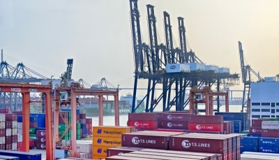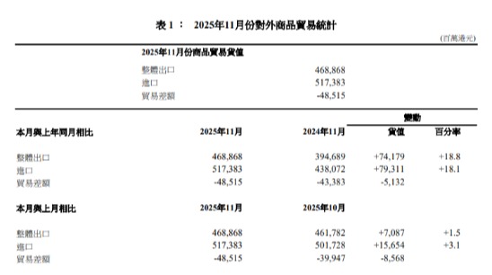 圖為在青衣對開水域航行的貨櫃船。香港中通社圖片 香港2月商品整體出口貨值為4088億元(港元,下同),按年上升24.7%。2月商品進口貨值為4729億元,按年上升29.9%。今年2月錄得有形貿易逆差642億元。 政府發言人表示,由於受到春節假期在不同日期影響,在作出按年比較時,把1月及2月的貿易統計數字合併分析會較為合適。首兩個月香港出口貨值按年升29.6%,進口貨值升34.1%,有形貿易逆差790億港元。 首兩個月輸往中國內地的出口貨值升幅近32%,對馬來西亞的升幅逾95%;來自內地的進口貨值升38%。按貨品劃分,首兩個月電動機械、儀器和用具及零件的出口升幅達逾35%,通訊、錄音及音響設備和儀器亦升約48%。 政府發言人表示,今年初商品出口繼續表現強勁,首兩個月出口至大部分市場及主要商品類別的出口均繼續大幅上升。 發言人指,展望未來,全球對人工智能相關電子產品需求應繼續堅挺,對香港商品貿易表現有望帶來支持。但隨著中東地緣政治緊張局勢升溫,環球經濟前景不確定大幅上升,主要先進經濟體貿易政策反覆。政府會繼續密切留意相關發展,保持警覺。(完) 【編輯:馬華】