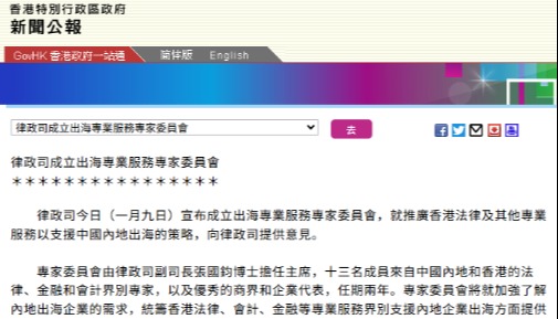 香港律政司首推支援出海香港法律專業服務名冊