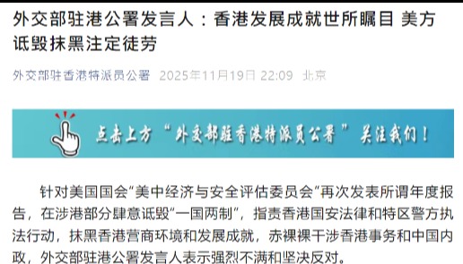 香港新聞網4月17日電 香港特區立法會17日透過發言人表示,強烈不滿及堅決反對美國發表所謂2026年“香港政策法報告”。 香港特區是中華人民共和國不可分離的部分,是一個在“一國兩制”下享有高度自治權、直轄於中央人民政府的地方行政區域。立法會發言人指出,該報告抹黑“一國兩制”下,香港在民主、法治、人權自由、社會經濟及文化等方面的發展,並詆毀香港國安法等一系列維護國家安全法例在本港的執行情況。立法會敦促美國當局認清事實,不要發出誤導、危言聳聽的訊息,立即停止以任何形式干預中國香港事務。香港民主高質量發展,居民依法享有的權利和自由得到充分保障,不容詆毀抹黑。自2021年完善選制度後,立法會每次選舉均體現了廣泛代表性和社會均衡參與,整個過程公平、公正及公開,同時貫徹落實“愛國者治港”原則。在行政主導下,立法會務實高效推進各項工作,配合和監督特區政府施政,包括促進經濟發展,改善民生,更積極主動融入和服務國家發展大局。這些惠民實績,不容任何別有用心的人士否定及肆意扭曲。
