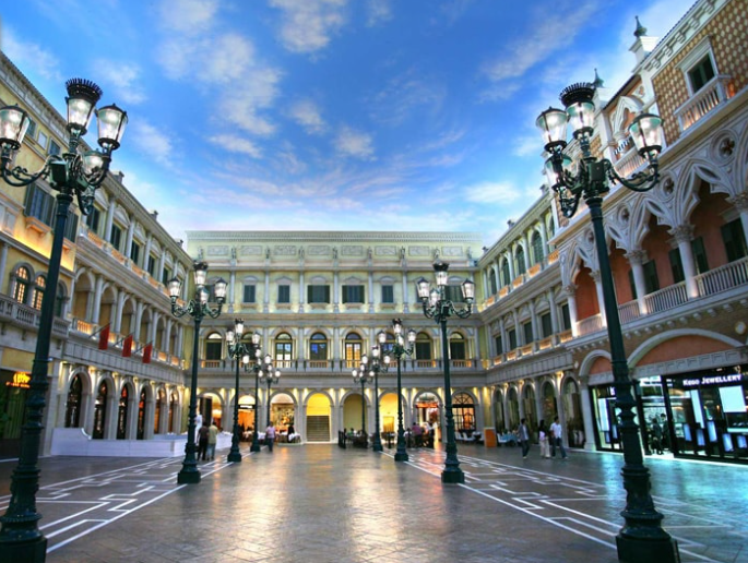 (圖源:澳門旅遊局) 3.威尼斯人購物中心 威尼斯人購物中心設有超過330間國際名店,提供流行時裝、珠寶、飾物、禮品、運動用品以至餐飲服務。享受購物同時,可漫步運河兩旁的小石路,欣賞廣場上別具特色的街頭表演;乘坐貢多拉船泛舟河上,在船夫優美的歌聲下,感受威尼斯古舊的浪漫風情。