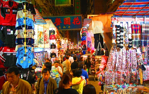 (圖片來源:新華網) 旺角女人街 女人街,旺角地區最熱門的露天市集,百家地攤匯集於此,玩具、包包、飾品、衣服數不清。 價格低廉、殺價戲碼等獨特文化讓人大開眼界,周邊的波鞋街 (賣鞋)、金魚街 (賣飼養魚)、西洋菜南街 (3C用品、化妝品) 亦精彩,女人街作為香港必去景點可謂是當之無愧。