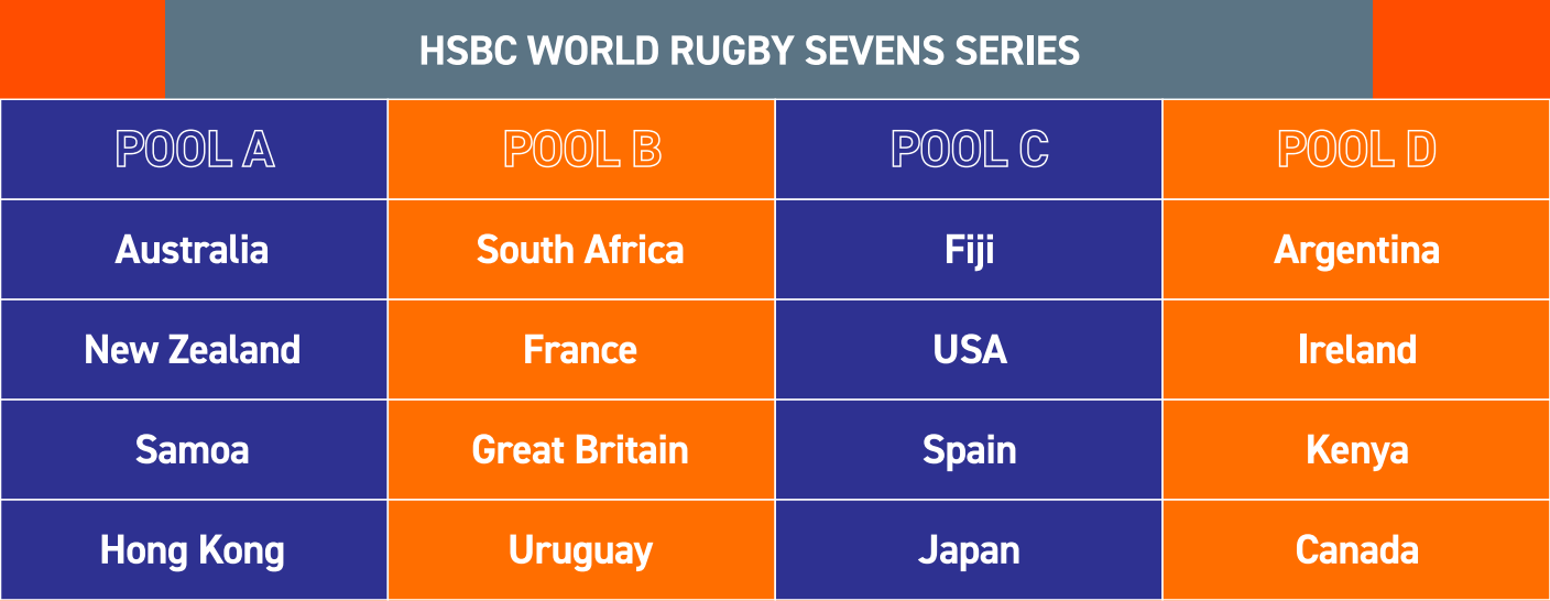 香港國際七人欖球賽參賽隊伍。(香港國際七人欖球賽官網圖片) 在賽程方面,每天都有不同看點,真可謂是刺激與激情的碰撞。