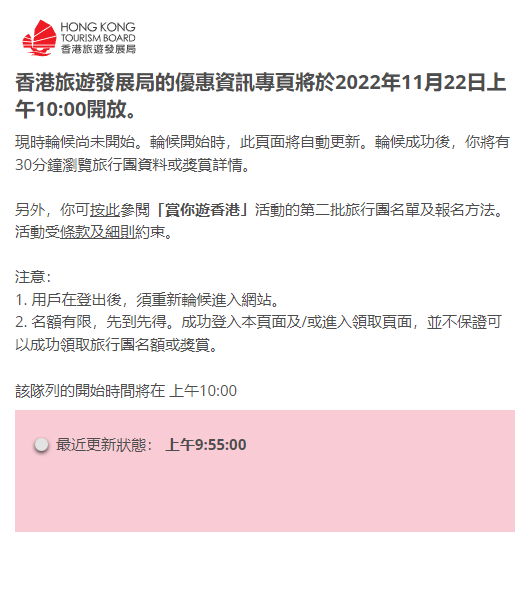 旅發局網頁圖片 另外,為符合政府最新的防疫要求,所有參與“賞你遊香港”旅行團參加者,均須滿足疫苗通行證的最新疫苗接種要求,部分旅行社亦會要求團友在出發前自行接受快速檢測。 報名網站:(請按此) 行程網站:(請按此) 【編輯:孟宜君】
