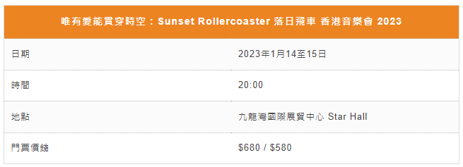 圖片來源:落日飛車官方 落日飛車的音樂風格早已不能用單一名詞形容,復古、迷幻、浪漫、city pop、soft rock、blue-eyed soul、AOR等元素都能在他們的作品找到,“懷孕搖滾”也是對他們音樂常用的形容詞之一。他們在2015年、2017年曾來香港演出,樂迷原本期待他們2020年帶著《CASSA NOVA 半熟王子》再來香港的專場瞬間售罄,卻因疫情一再延期,樂迷實在是苦等了三年又三年! 這三年,落日飛車無論是音樂作品、製作規格以至樂隊的視野都在力臻完善,為配合他們在演出規格的提升,香港專場特意把演出場地從旺角麥花臣場館移師至九龍灣國際展貿中心 Star Hall,邀來樂隊御用演出製作團隊操刀,希望為大家提供更完整的現場音樂體驗。三年前買了飛“長揸(strong hold)”到現在的觀眾將獲獲免費升級至$680最前區域(需與主辦預先登記);而無論是當年搶不到門票抑或是近年才愛上飛車的樂迷,現可於11月25日早上10時開始在HKTicketing 購買門票。 主辦單位查詢:
