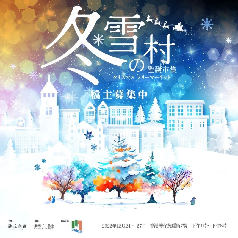赤柱美利樓聖誕市集12月逢周末舉行 聖誕市集 - 灣仔茂蘿街7號“冬雪の村聖誕市集” 大家想不想在鬧市中過一個難忘又浪漫的白色聖誕呢?大家記得mark由平安夜開始一連4日的“砂丘企劃x冬雪の村聖誕市集”!屆時會在灣仔茂蘿街7號設有特別活動同佈置,還有不同的工作坊同打卡位,約定你們渡過一個濃濃氣氛的聖誕節。 日期:12月24至27日 時間:每日下午1時至晚上8時 地點:香港灣仔茂蘿街7號M7地下(公眾休憩空間)