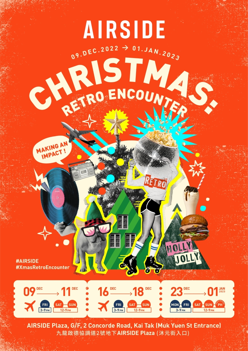 “Pinkoi Design Fest 2022”在九龍灣舉行(圖片:Pinkoi) 聖誕市集 - 啟德AIRSIDE聖誕市集 啟德全新地標AIRSIDE舉行首個聖誕市集 “AIRSIDE Christmas: Retro Encounter”,聖誕市集由12月9日起,逢星期五、六、日都舉行多個活動,當中包括啟德首個滾軸溜冰場,還有寵物Fun區,更會有多位香港本地創作歌手登場,包括許廷鏗,馮允謙、石山街、Per se、黃妍等,讓大家歡度聖誕。 日期:12月9至11日、16日至18日,12月23日至2023年1月1日 時間:星期一至五下午3時至晚上9時,周末及公眾假期中午12時至晚上9時 地點:啟德協調道2號地下AIRSIDE G/F Plaza(沐元街入口,啟德站B出口1分鐘直達)