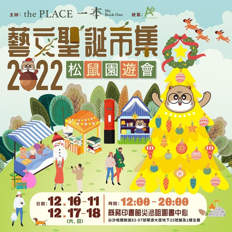 “聖誕跨年市集”12月20日揭幕(圖片:奧海城) 聖誕市集 - 尖沙咀圖書中心“松鼠園遊會”藝文聖誕市集 又到聖誕,商務印書館尖沙咀圖書中心再次舉行聖誕市集!今年,“一本”吉祥物小松鼠將與讀者來一場園遊聚會小松鼠準備了一系列活動,包括店內印章收集換領小禮品、松鼠郵政所代寄特別版聖誕名信片、特色打卡位等。一眾讀者可以選購心水好書的同時又可以為自己、家人朋友選擇心儀禮品,共度溫馨佳節。 日期:12月10及11日、17及18日 時間:中午12時至晚上8時 地點:商務印書館尖沙咀圖書中心(尖沙咀彌敦道83-97號華源大廈)