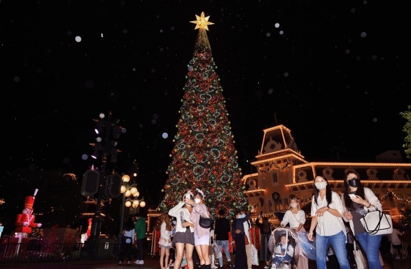 在巨型聖誕樹前打卡(圖片:香港迪士尼樂園)