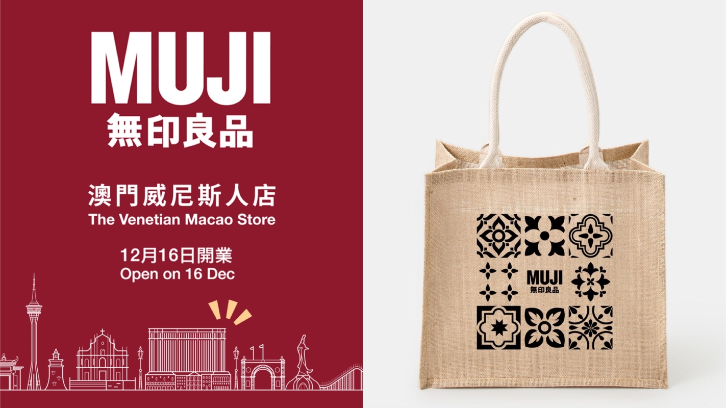 MUJI澳門店位於澳門威尼斯人 澳門新店總面積達21,000平方呎,提供男女童裝、家具、生活雜貨、文具、個人護理用品、旅行用品及食品等逾7,000種商品;同時設有住空間主題展示區,分享現代家居配置提案。