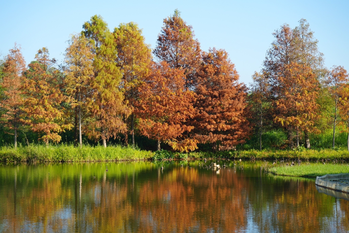 紅葉下的天空之鏡 香港濕地公園落羽杉轉紅分享到: