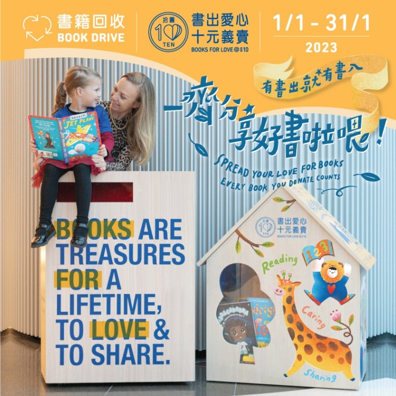 活動收集到的書籍將由來自合辦單位及受惠機構的義工協助整理及分類,捐贈書本前,請捐書者詳閱下列收書準則,並篩選保存良好而且適合義賣的書籍。2023年3月率先推出兒童圖書網上義賣,並於4月於太古坊舉行8天實體書籍義賣,所有書籍一律以每本港幣10元發售,詳情稍後公佈。義賣活動籌得的善款將悉數用作支持香港小童群益會的“群益寶庫”計劃,以及義務工作發展局推動義務工作的持續發展。 “書出愛心.十元義賣”從2009年至今已踏入第十一屆,成為公司受歡迎的慈善活動之一,2022年該活動破紀錄籌得高達港幣100萬元的善款。