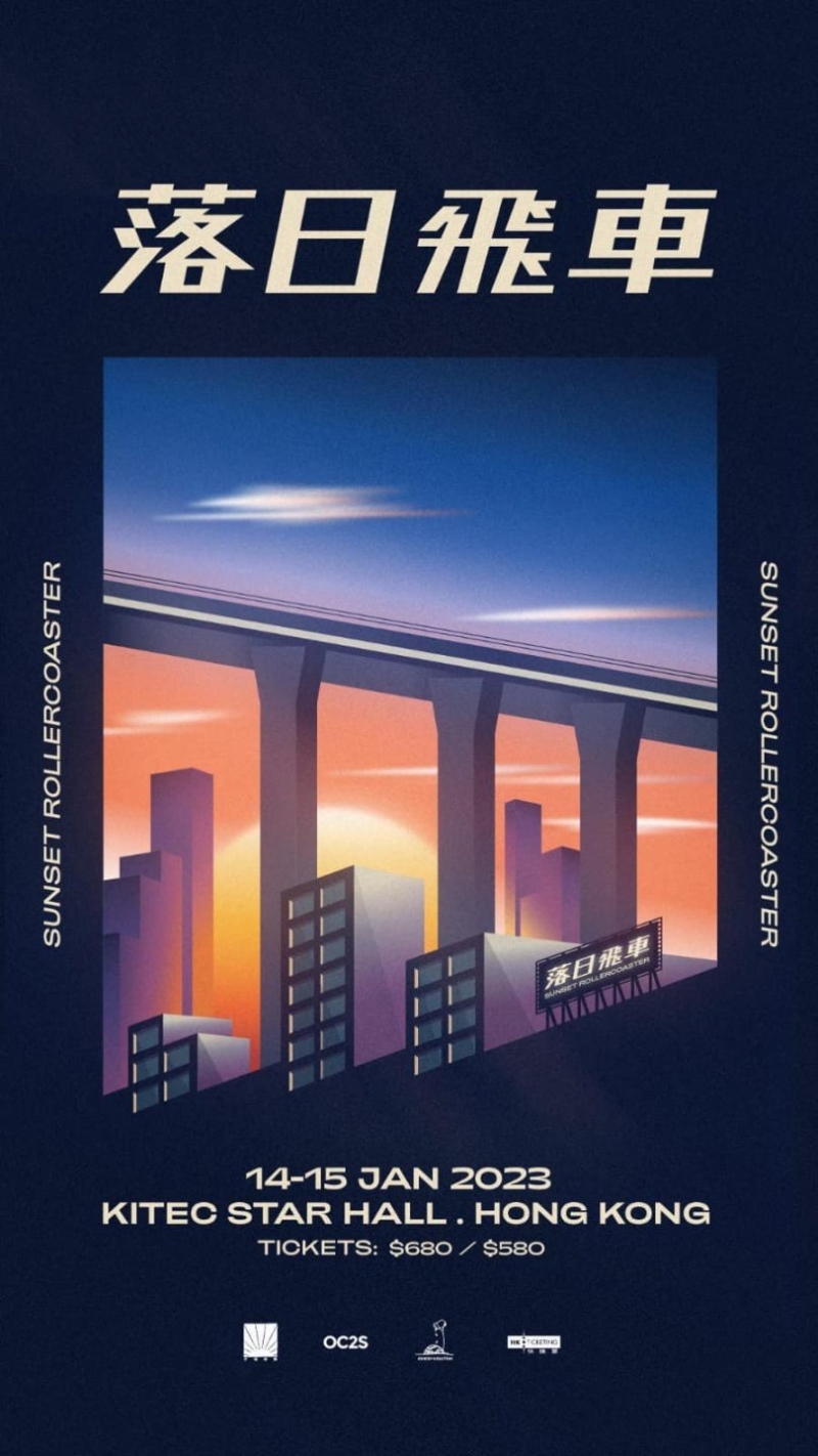MC張天賦"This is MC"演唱會 MC張天賦"This is MC"演唱會 日期:2023年1月20至22日 時間:晚上8時15分至11時15分 地點:紅磡香港體育館(紅館) 票價:HK$1080;HK$880;HK$680;HK$480 4、2023演唱會:落日飛車 最受歡迎的台灣樂隊之一落日飛車,將於1月14及15日一連兩日於九龍灣國際展貿中心作香港公演。復古、迷幻、浪漫、city pop、soft rock、blue-eyed soul、AOR等元素都可以在他們的音樂作品中找到。