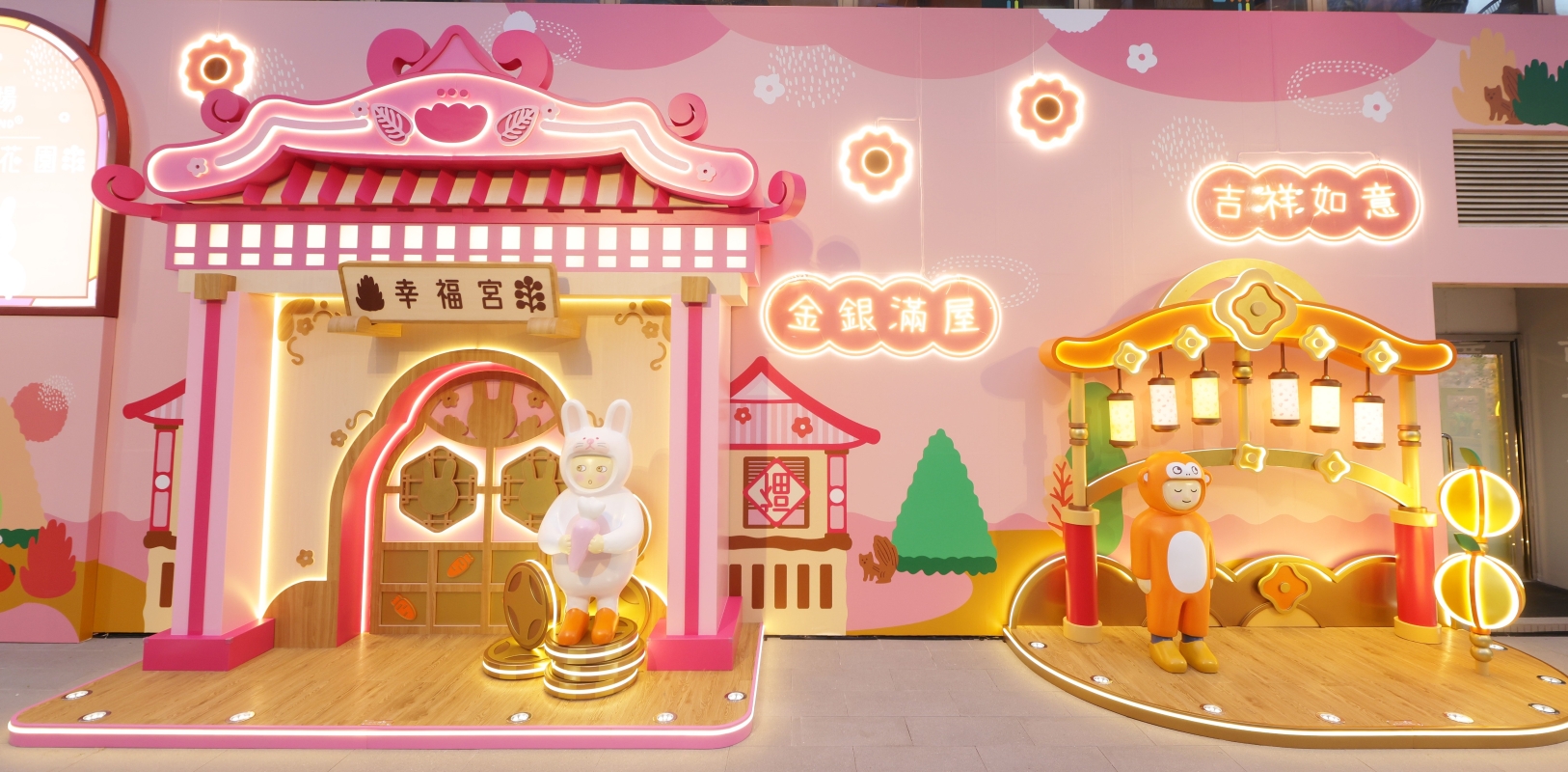 “唯美浪漫桃花園” 與粉紅小兔Tokee Pink一眾好友拍完一輯爆萌照後,誠邀大家漫遊一道充滿冬日戀愛氣息的“光影星之道”,隧道以粉嫩色系燈飾作主調,再配上可愛度十足的獨角獸、甜品、禮物等霓虹燈作點綴,瀰漫著甜蜜浪漫氣息,盡情跟摯愛打卡放閃。 荃灣廣場 x CIRCUS BOY BAND春日開運花園 開放時間:即日起至2月19日 活動地點:荃灣廣場L5空中樂園 開放時間:上午10時30分至晚上10時 限量版一套四款“萌兔迎春利是封”