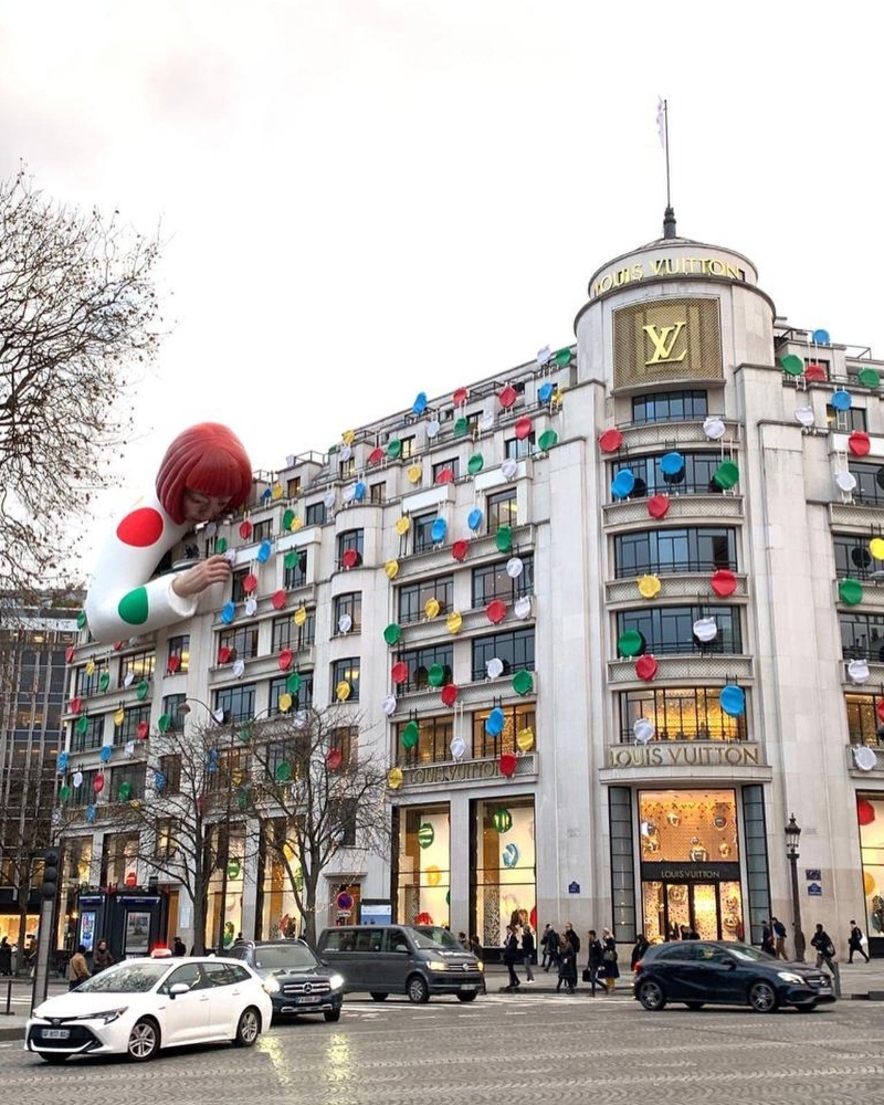 香港新聞網1月13日電 時尚圈和藝術圈都翹首期盼的Louis Vuitton x 草間彌生聯乘系列終於發佈,繼品牌在東京策劃一系列裝置藝術後,全球各地的Louis Vuitton(LV)店舖也紛紛打造主題期間限定店。LVMH集團視覺藝術總監Faye Mcleod更為藝術與時尚迷們帶來令人耳目一新的創作——草間彌生充氣雕塑“爬”上了LV法國巴黎總部外牆,猶如圓點宇宙“攻陷”巴黎,掀起網絡熱話!