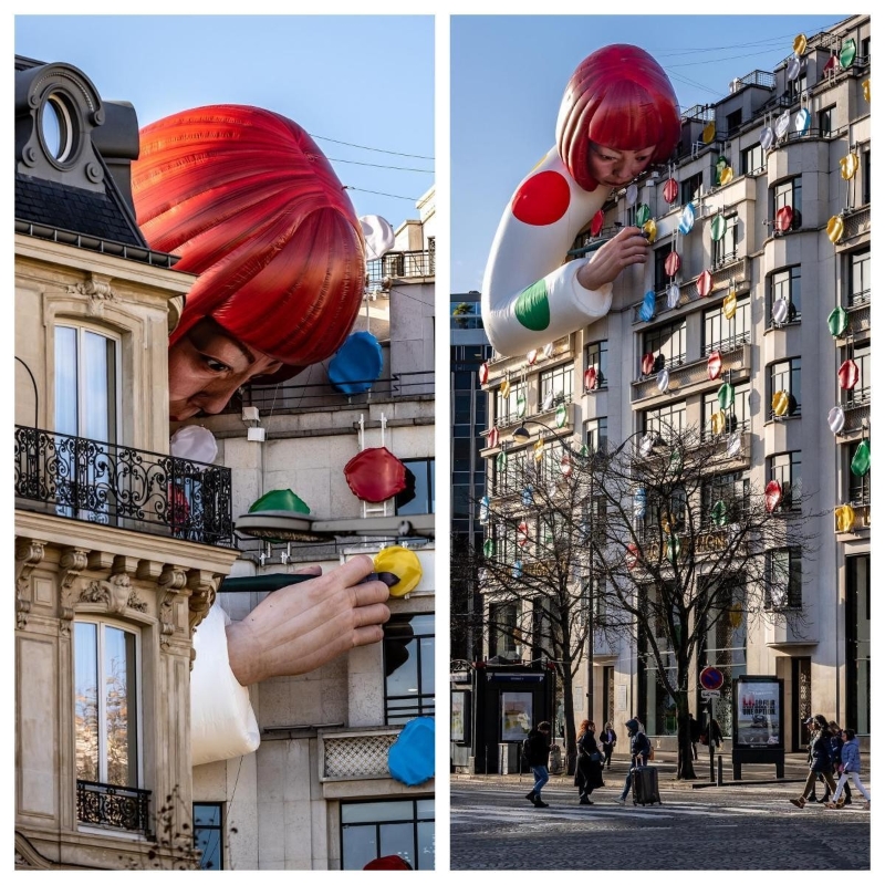 巴黎香榭麗舍大街出現巨型草間彌生充氣雕塑