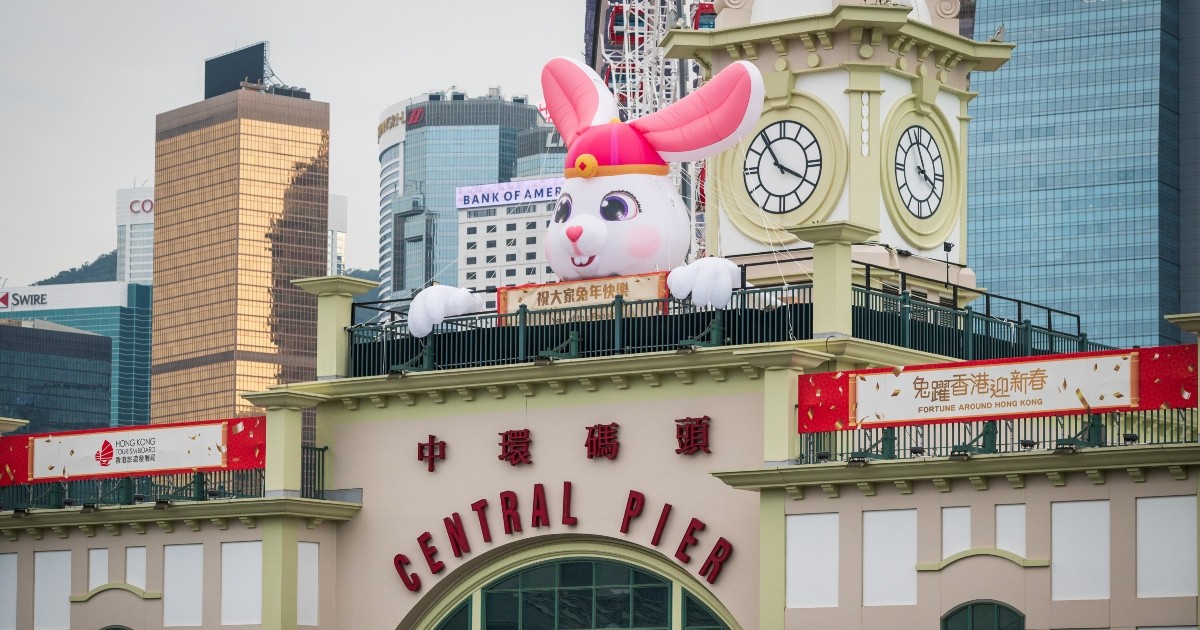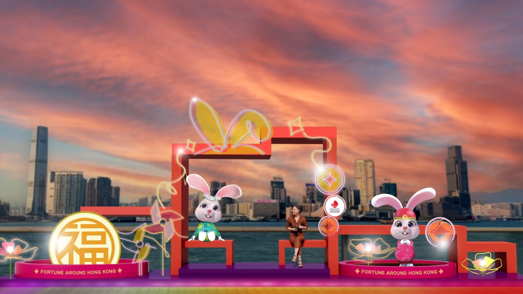 香港文化中心露天廣場“兔來運轉.花燈迎新禧”綵燈展 香港旅遊發展局(旅發局)亦推出連串賀年活動,由1月19日(年廿八)至2月5日(正月十五),提供五個打卡位,其中一個名為“中環碼頭巨兔賀年”,一隻高8米、闊11米的巨型福兔,躲在碼頭頂層伸出頭來,相等於兩架巴士高度,市民或遊客乘坐天星小輪,從尖沙咀往中環,橫越維港時,已有被迎接的感覺。天星小輪農曆新年期間,推出維港遊85折優惠。