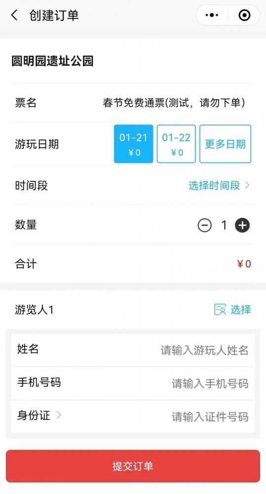 5)選擇遊玩時間、時段、數量→聯繫人信息→遊覽人信息→提交訂單